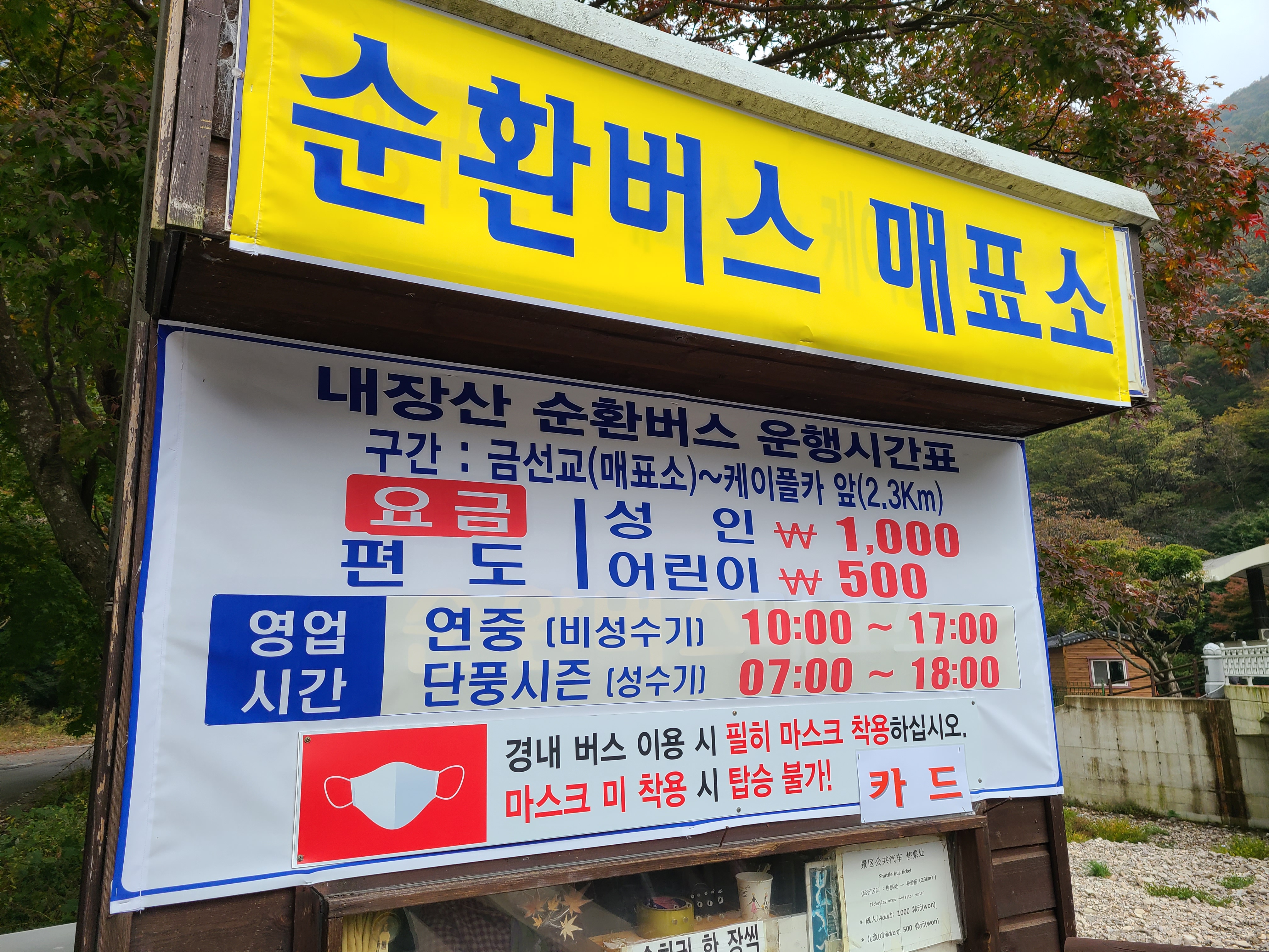 2.3km나 되는 긴 거리 때문에 내장산 케이블카까지 가는 길은 버스를 타고 갔는데