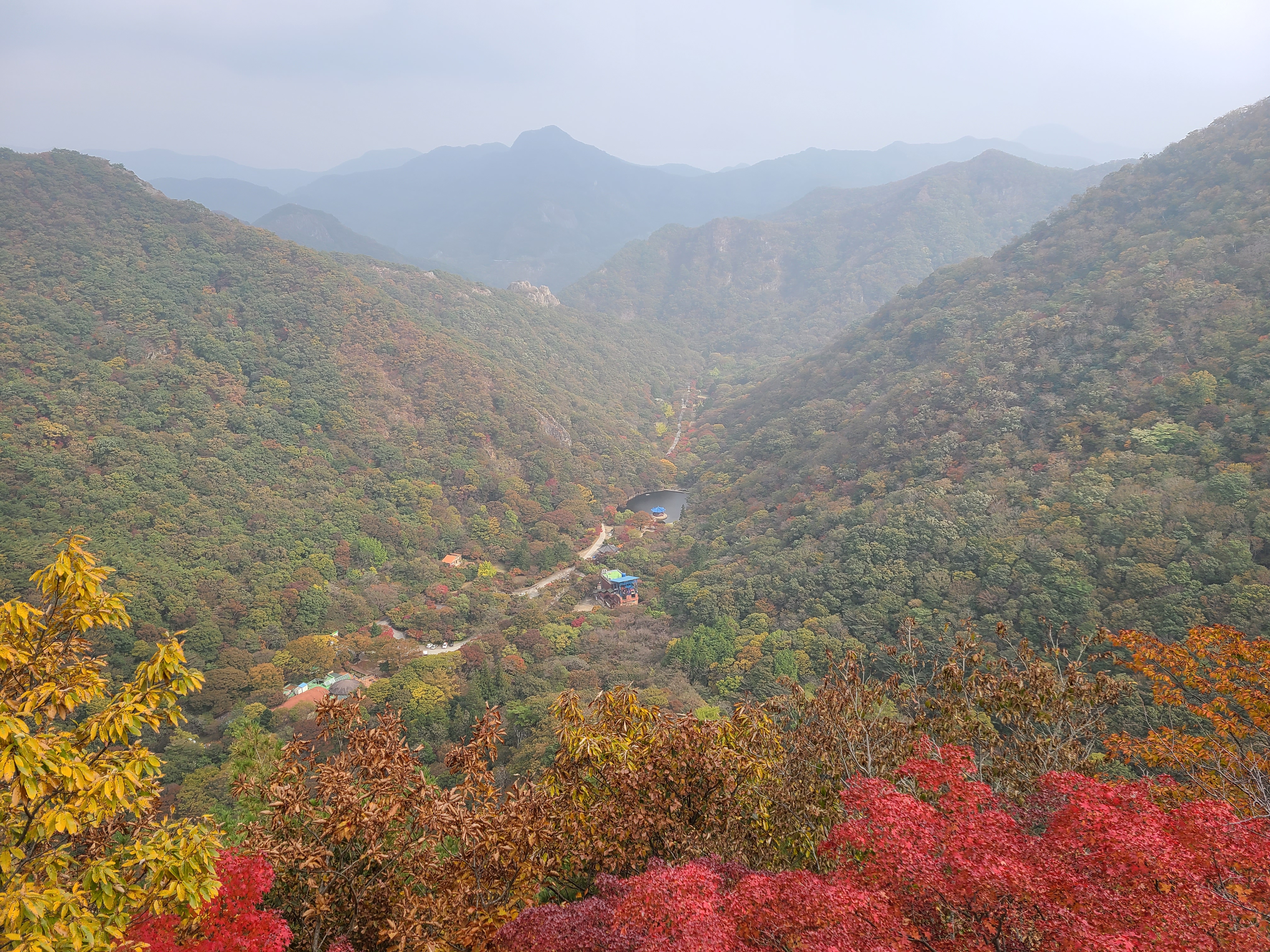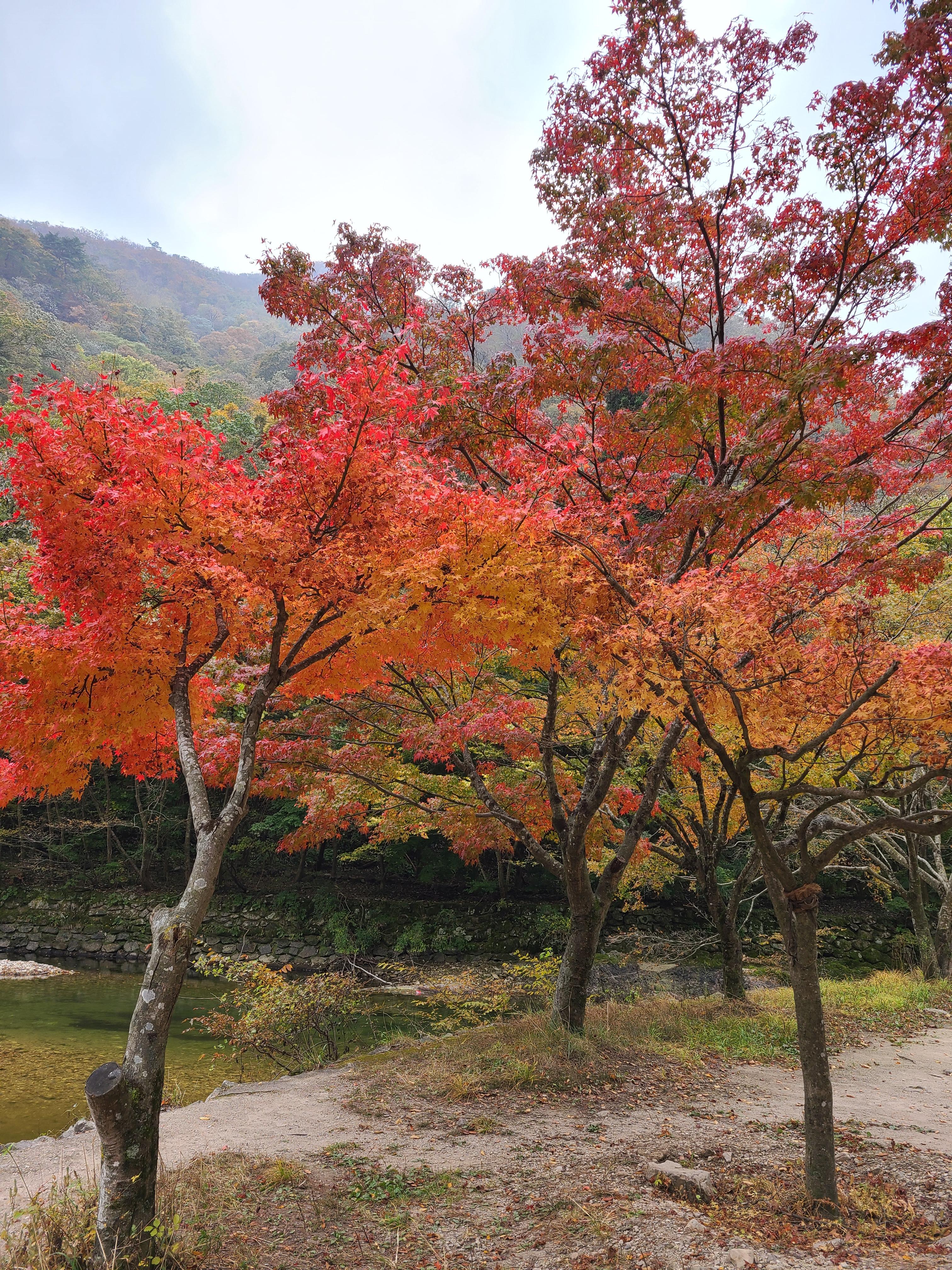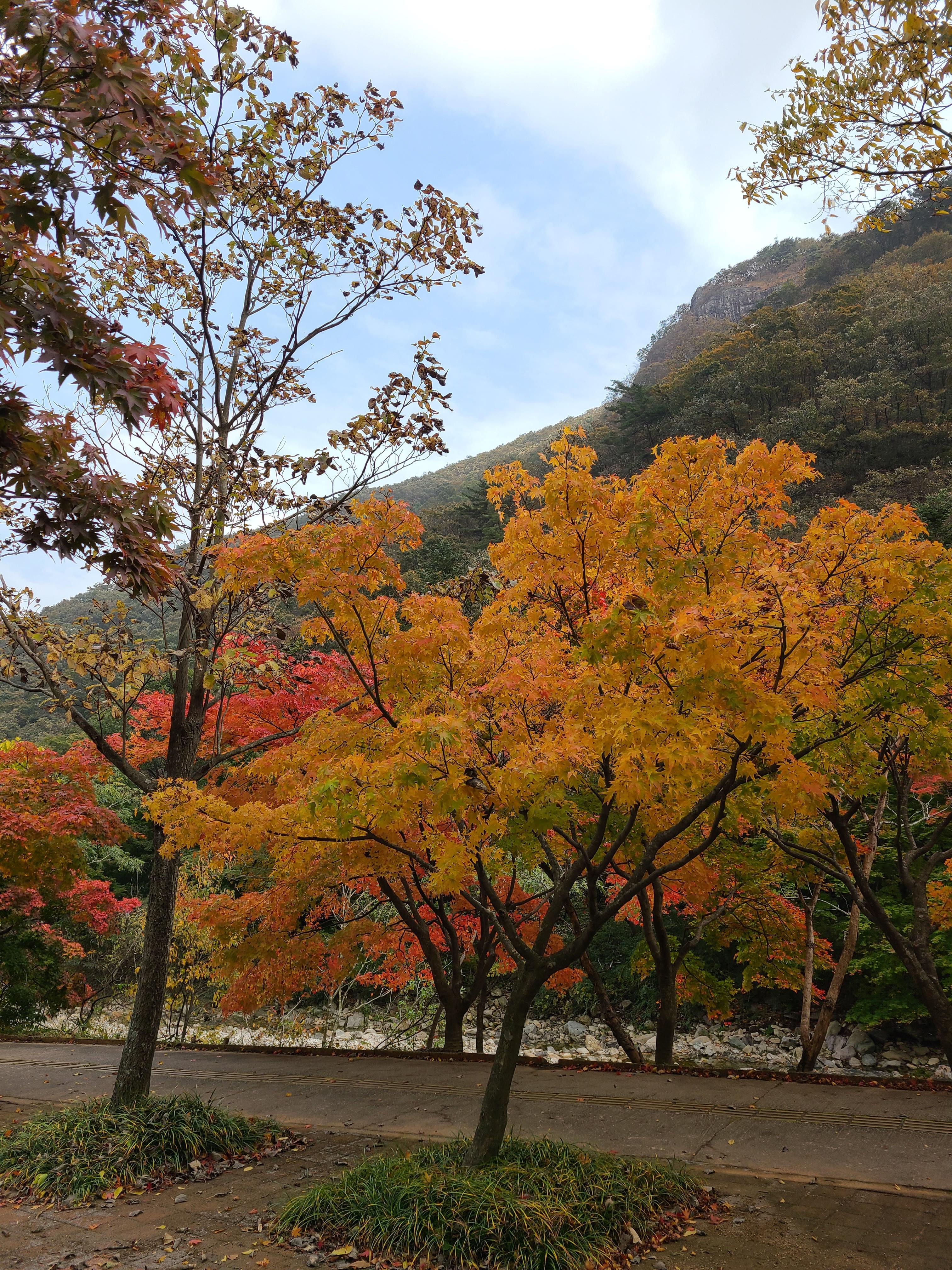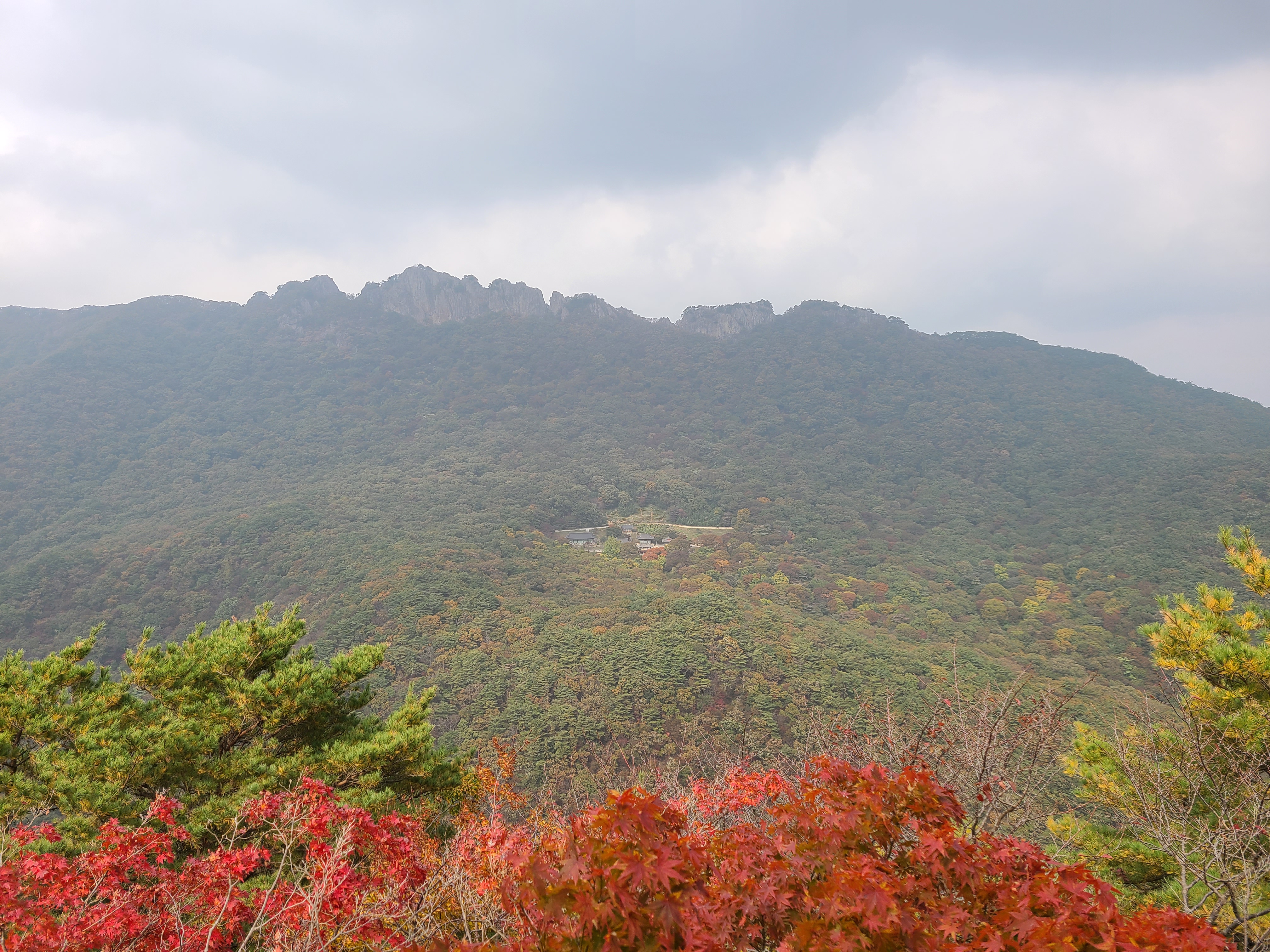 완전 빨간색으로 산이 물들지는 않았는데