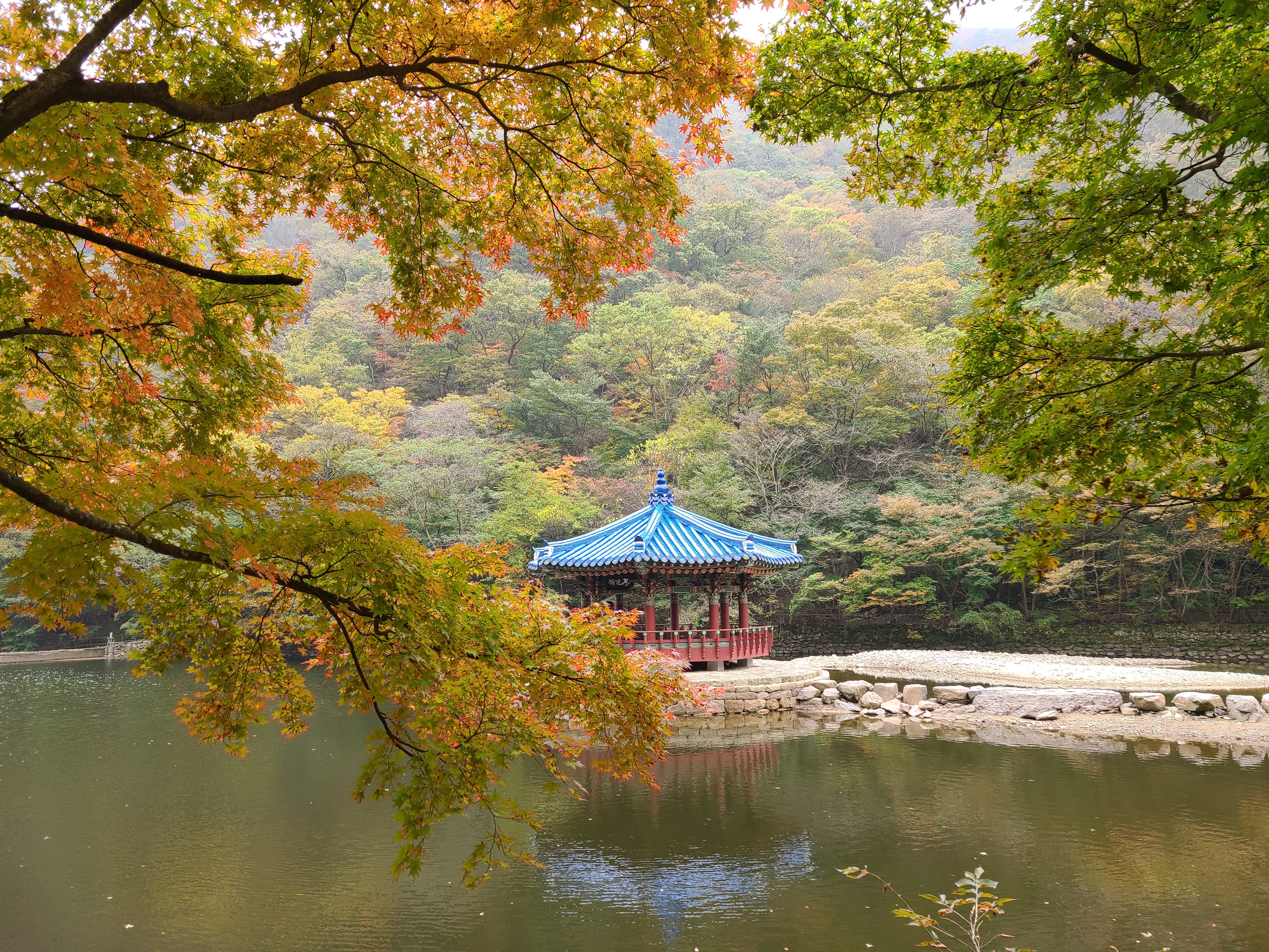 이 연못을 둘러싸고 단풍나무가 정말 이쁘게 피어있어서