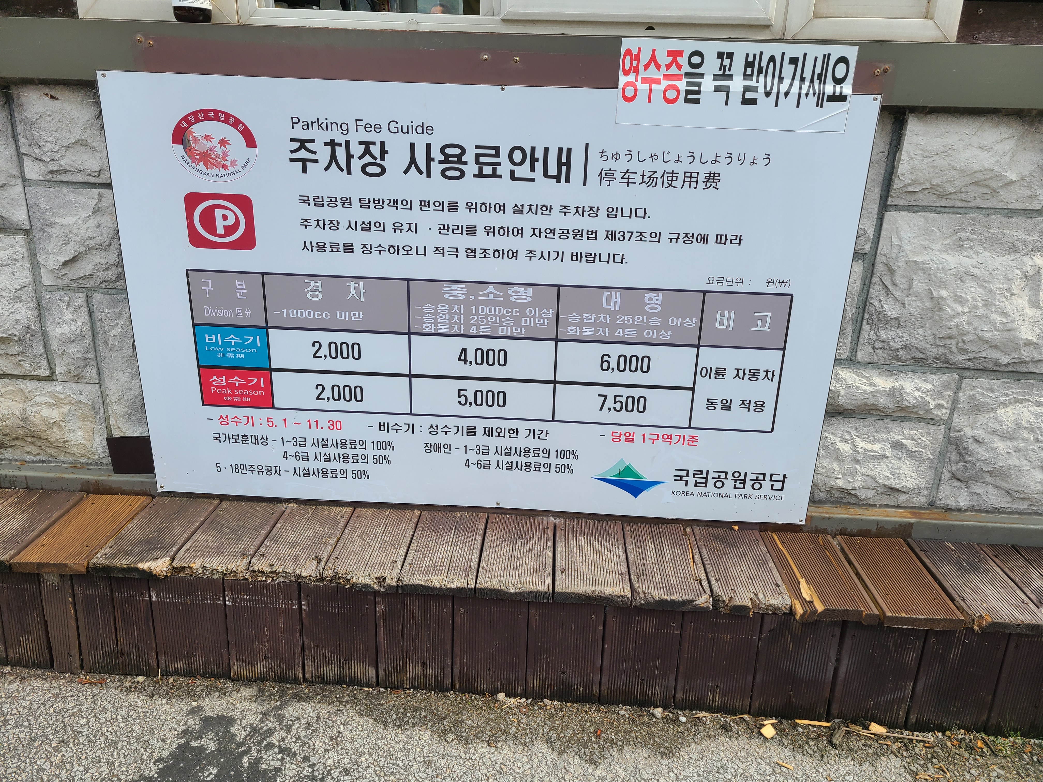 국립공원은 입장료를 받지 않는 걸로 알고 있었는데,