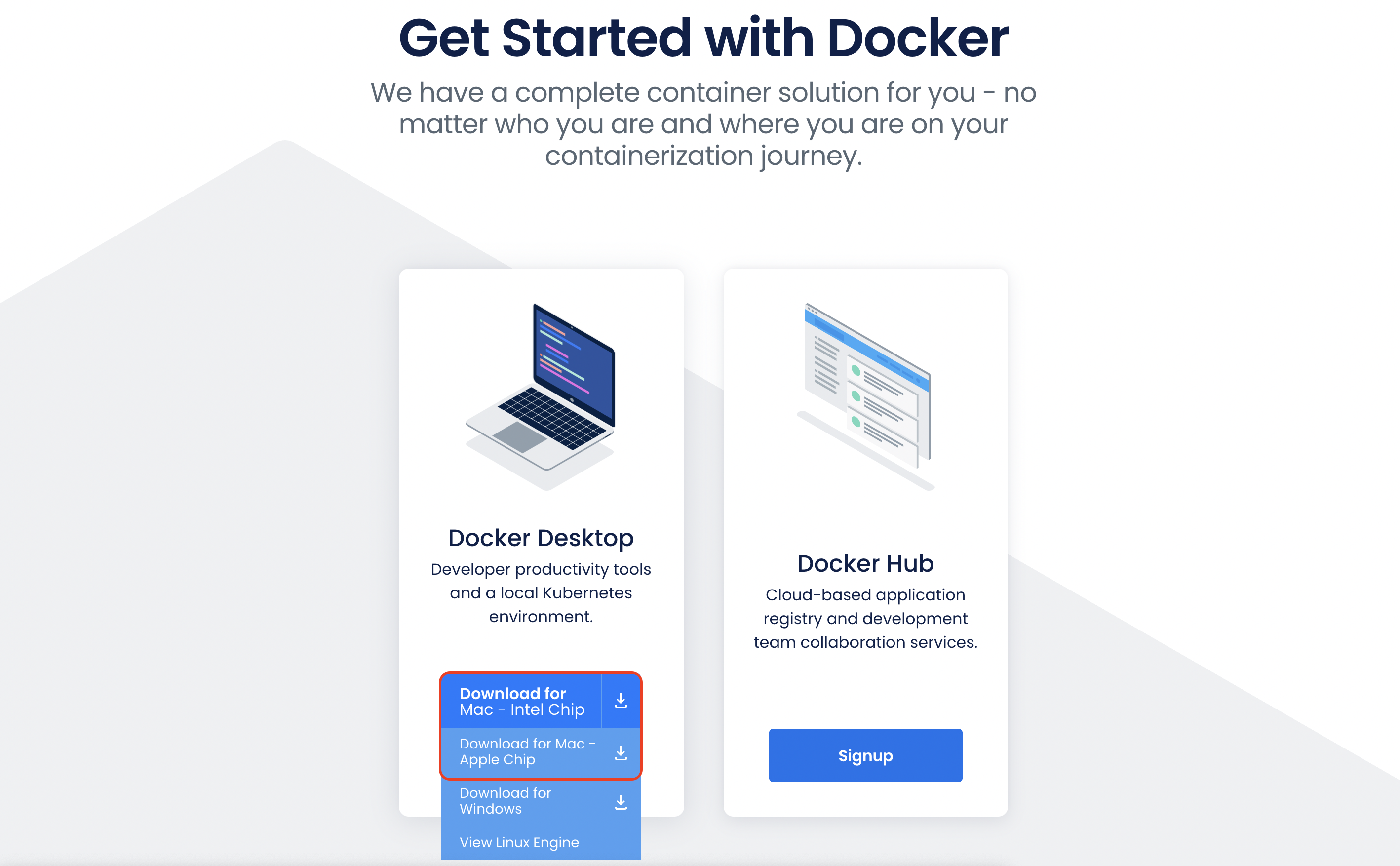최근 나온 ARM 기반의 맥북 사용자라면 Apple Chip으로 받고, 기존에 Intel Mac 을 사용하는 사용자라면 Intel Chip 버전으로 받는다.