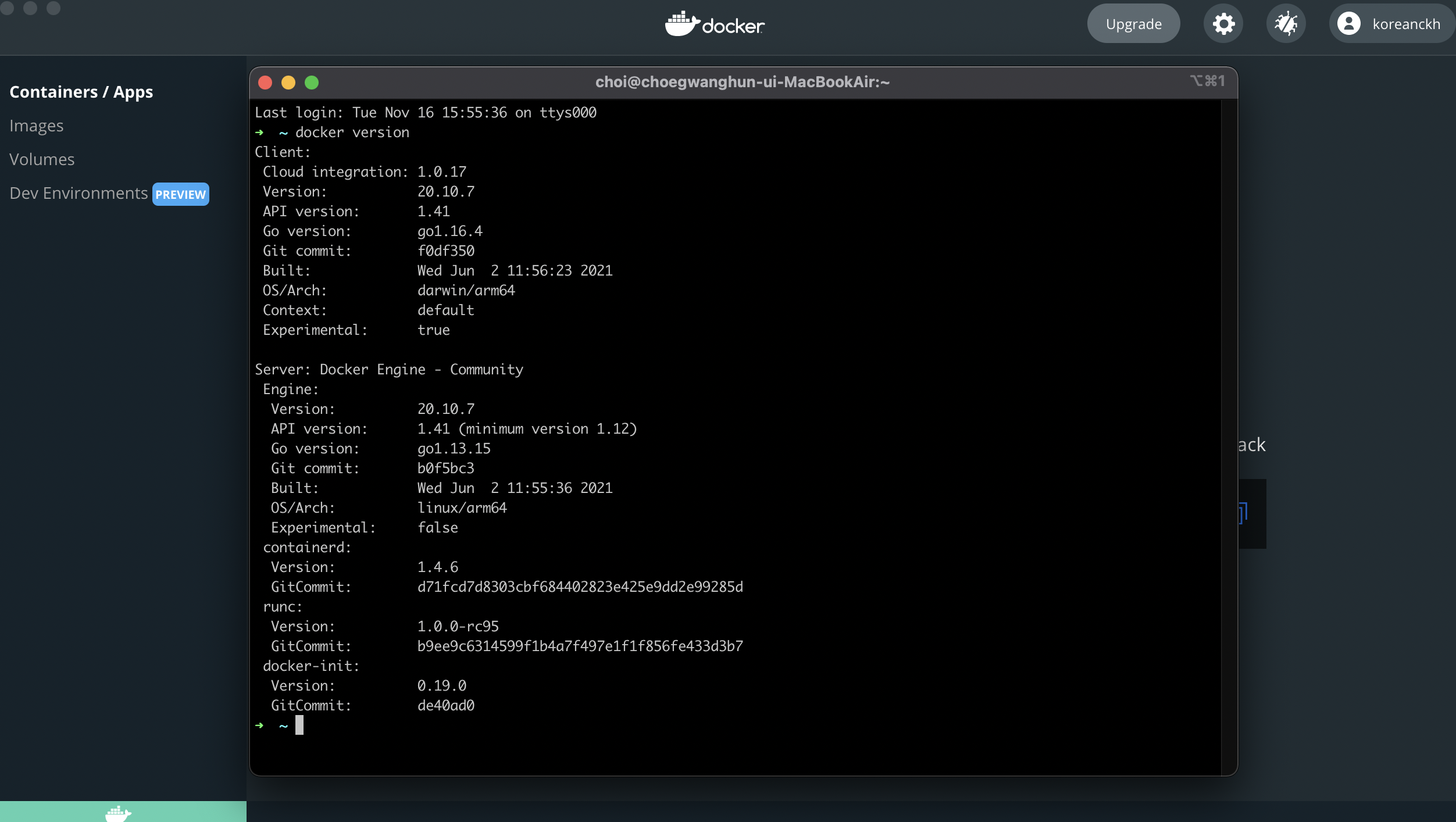 이렇게 에러없이 도커 버전 정보가 출력되면 도커 설치 완료!